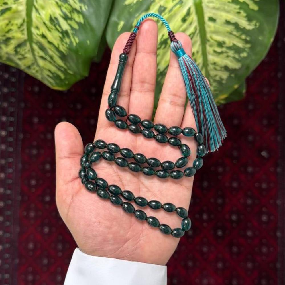 مسباح زعفران مجهز بكركوش تفصال يدوي خاصالقصة: زيتونهاللون:اخضر حرباءعدد الخرز: 51قياس الخرزالعرض: 7ممالارتفاع: 10.5مم